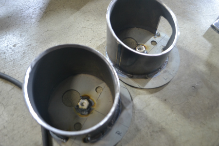 筒 を 本溶接 しまして、 まずは アッパー ブラケット が 完成。