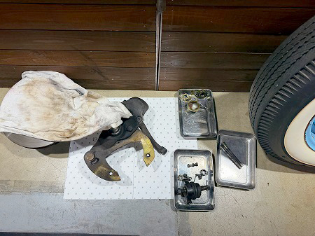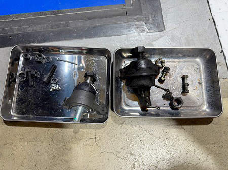 ボールジョイントも到着したのでアッパー、ロワーともに交換し