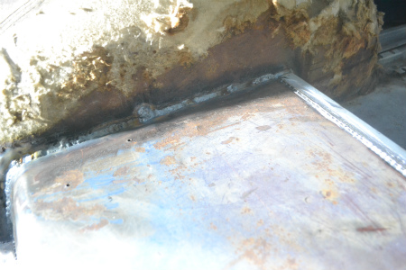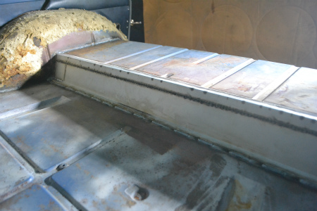 2 インチ 分、 鉄板 を 切りだして 入れまして