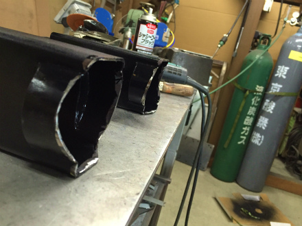 収まらないので、 端 に 丸パイプ を 切り出し