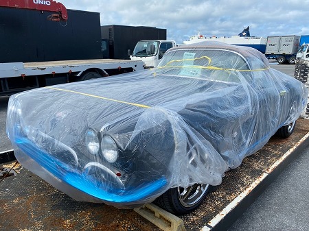 クルマを東京港まで乗っていき、パレットに載せて