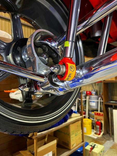 クロームや塗装を傷めずに、タイヤ荷重のまま