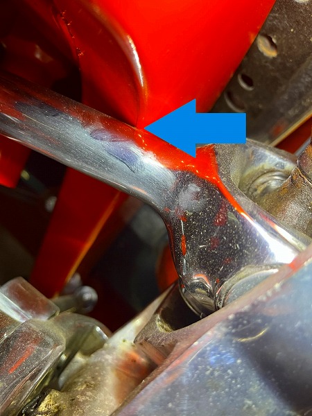 リアのシャフトがフレームに当たって