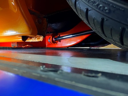 車高を下げて、フレームが着地すると