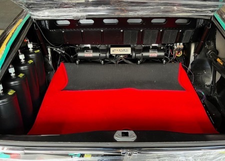 カーペットがエアサスユニットの下で