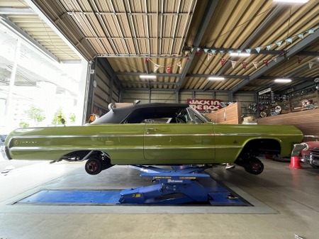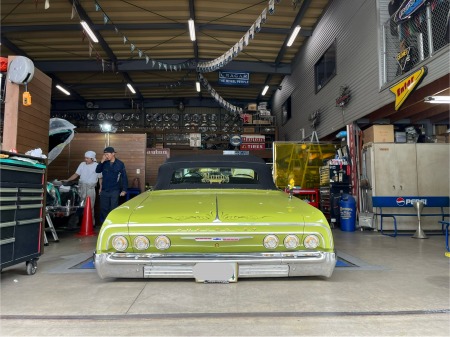 自身の64インパラの整備作業中