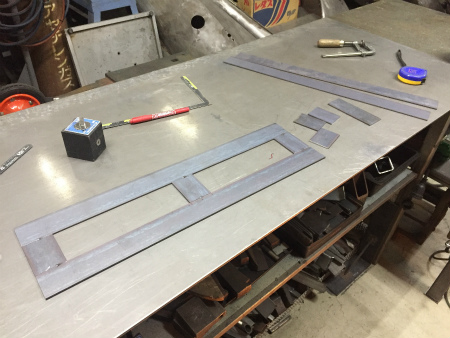 鉄板 を 切り出し、 EXO マウント の 寸法 に 合わせ