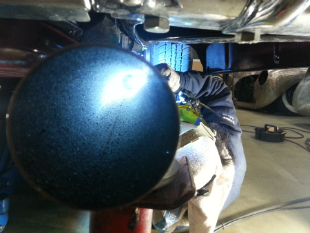 取り付け を 終えたら、 マフラー の 手直しへ
