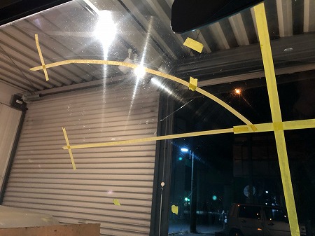 自動車ガラス屋さんに頼んで、出張できてもらい