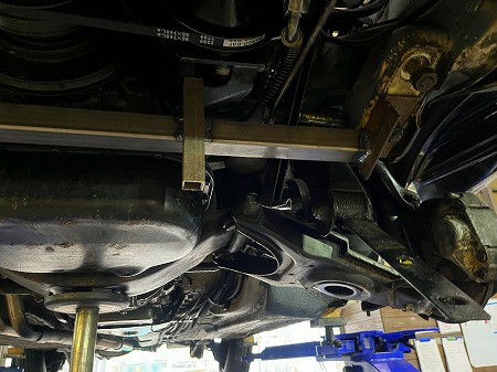 サブフレームを下げて、交換作業をする