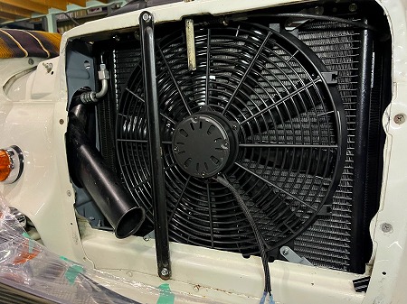 コンデンサーと電動ファンの設置を終え