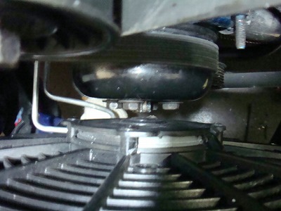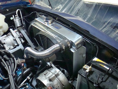 厚いラジエーター、 シュラウド、 電ファンの コンボは かなり キビシイ。