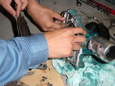 写真の ガスケットが千切れた部分には 実際つけるべき ガスケットは