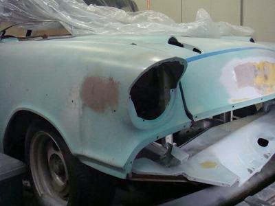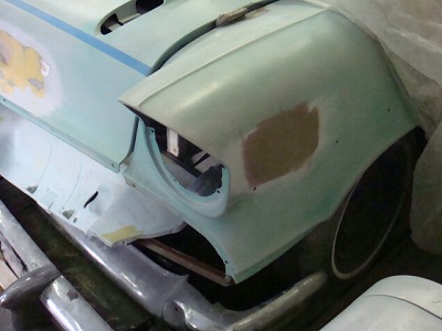 ドアノブ、 フード&フェンダーエンブレムを シェイブ。 TIGの後、 パテ盛るトコまで。