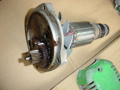 ブラシの残量は マダあるので、ブラシ、コンミテーター両方の 接点を 研磨して 復活。