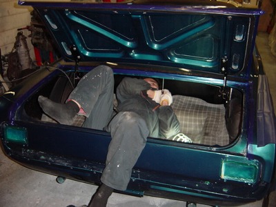 トランクフードの ヒンジ & スプリングを SETする DAICHI。