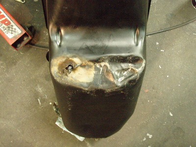 載せたまま へこませたろーと 叩いたら、   穴 開いたそうで。。。。。