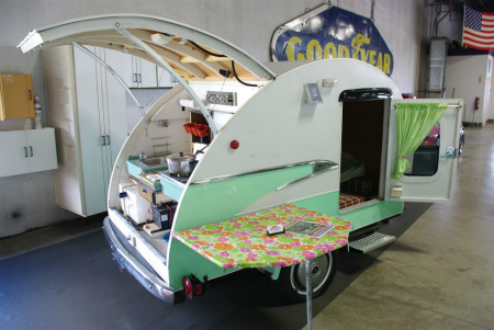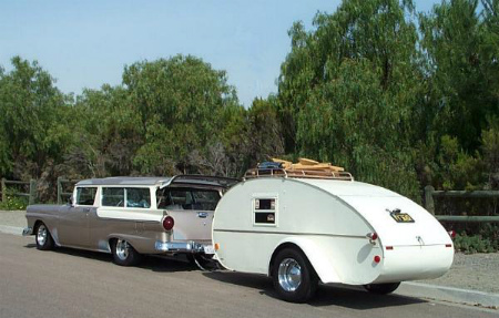 ティアドロップ型 の トレーラー を 見て、