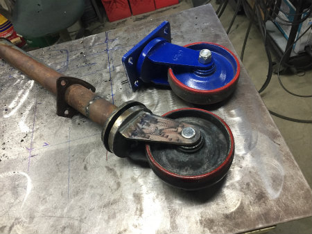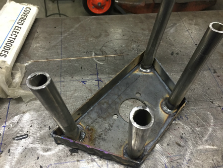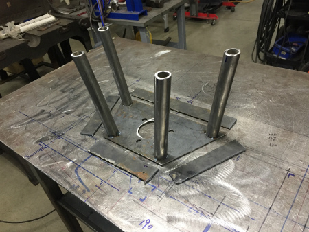 ナット を  溶接 し、  ”  押さえ ”  を  製作