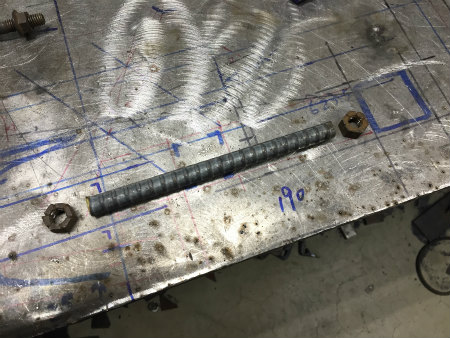 もう  2本、  鉄筋棒 を  切り出して、  ネジ山 を 作り
