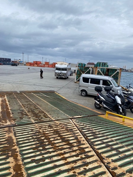 東京に戻す船に積みに行く際に