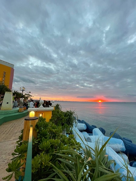 家族とビーチでサンセットを見ながら