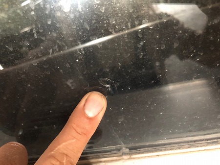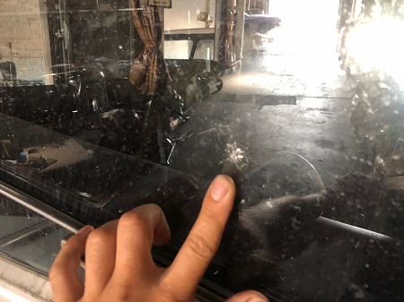 フロントガラスに飛び石の傷が見つかり
