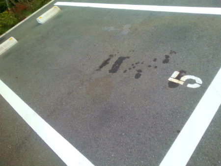 先日、 自宅 の  駐車場 を  見たら、  オイル 漏れ の  跡 が  ありまして