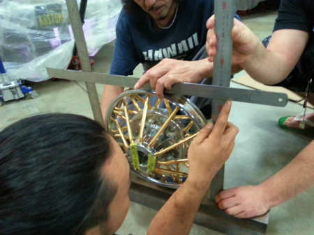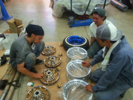 A田 くん の 熟練 技術 で、 実際 に ハブ に 装着 し