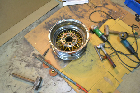 摘出 した センター 部分 と、 新品 リム を