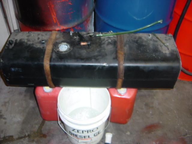 水を満タンに入れて 一気に口のデカイ、給油口から出す。