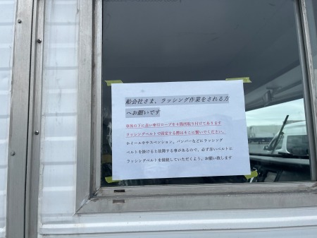 船内へ乗り込み、ラッシング作業に立ち会えず
