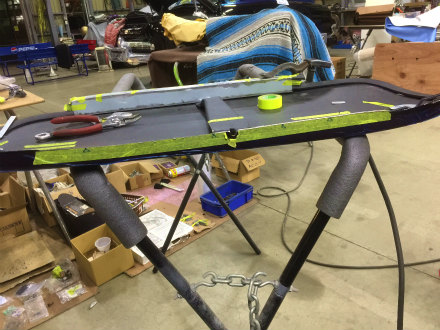 センター の フック を フェンダー アーチ に 引っ掛けて