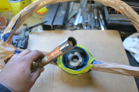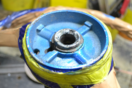表も しっかり 溶接 しまして、 GM コラム用 スプライン 移植 完了。