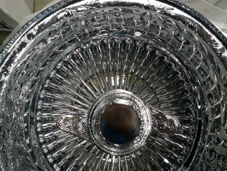 細かい 点 を 多用 した  彫り方 で、  リム の 淵 は
