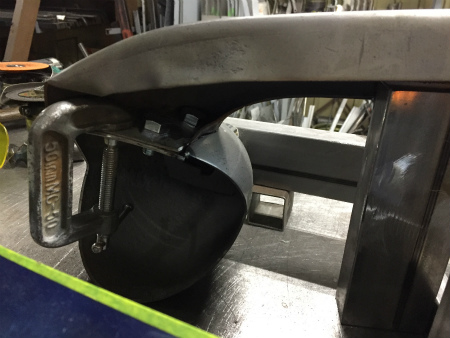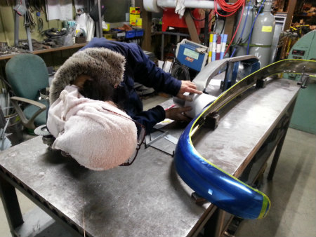 カイザー  バンパー ガード を  加工中