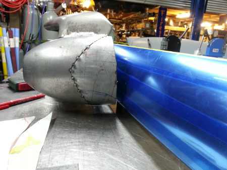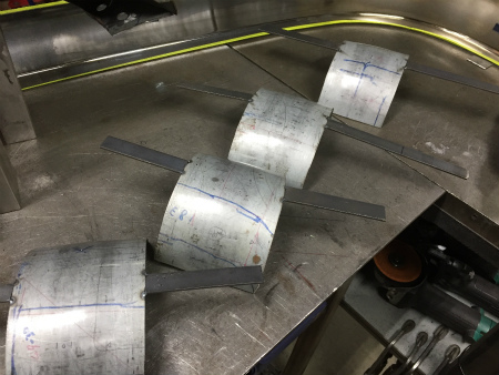 形 を 合わせた  鉄板 を  バレット に  仮溶接 したら