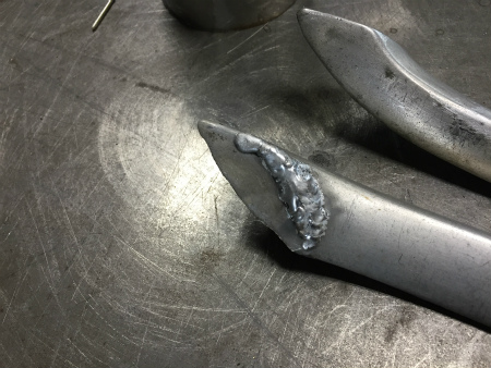 そのまま  肉盛り すると、  熱 で 穴 が 広がる 一方 なので