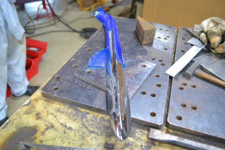 凹んだ  部分 の   裏側 に   叩き出す  ポイント を