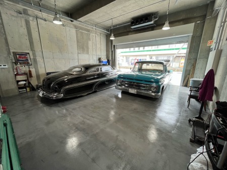次はY澤さんのガレージへ、スラムドトレーラー作業に伺います