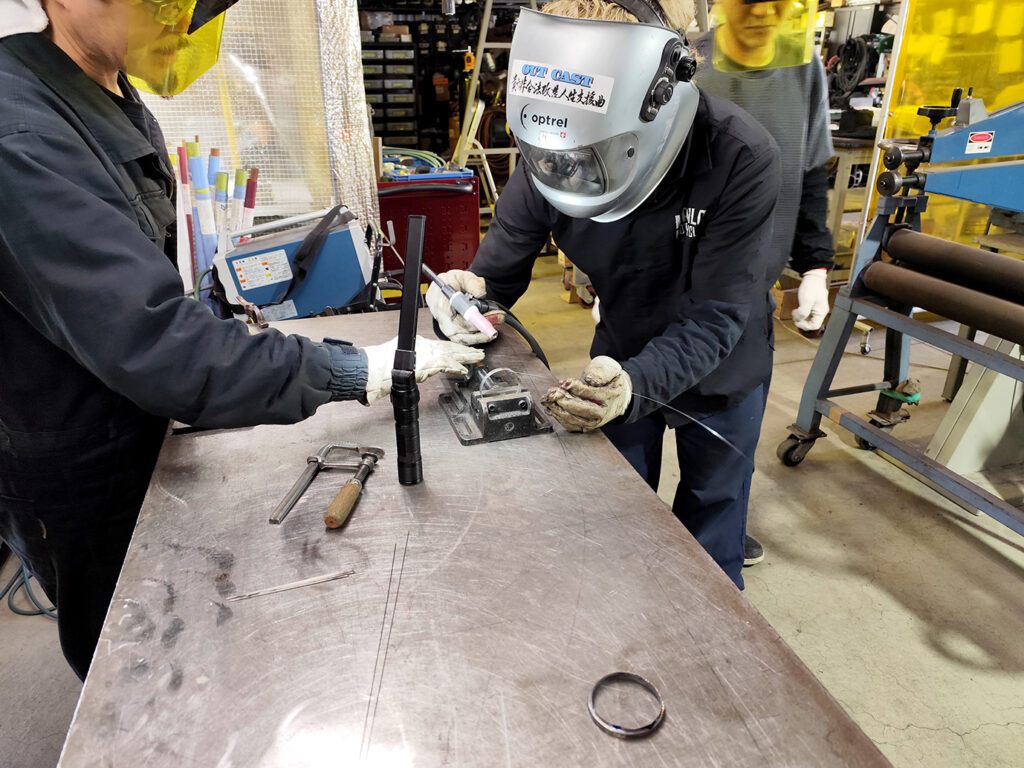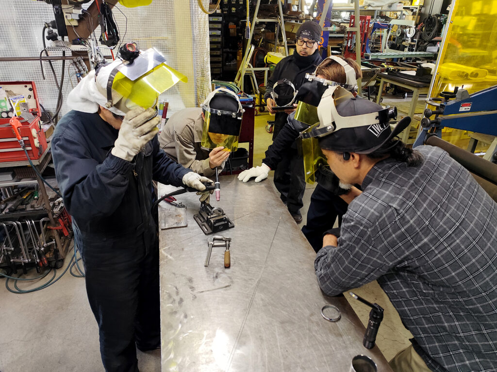ステンレス溶接講習では講義のほか、準備された素材を使いながら実技講習が行われます。