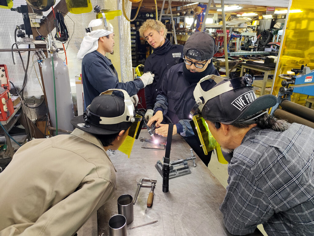 マフラーは音質などからスチールを使用したものを多く製作してきましたが、素材の硬さと粘り、耐熱性などに優れたステンレス製を採用することもあり溶接ビードの美しさなどから用いられることが増えています。ステンレス製マフラーの仕上がりには技術レベルの影響が大きいこともあり、技術講習項目に選定されました。