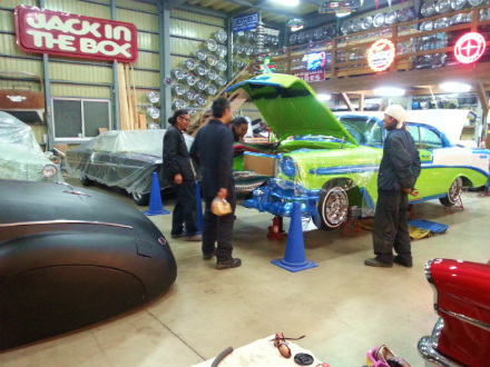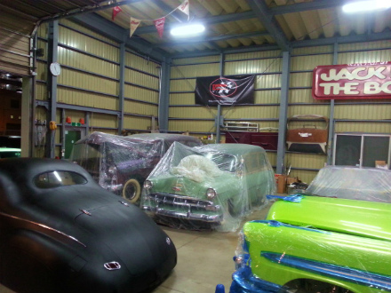製作中 の  SPARKLE 56 や、  ガレージ を  撮って もらいまして