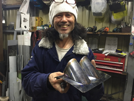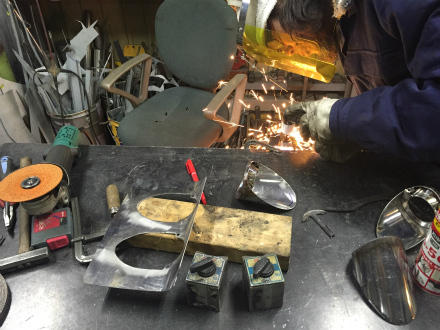 小さな 凹み や 折れ は、 表側 で 当て石 を 持って、