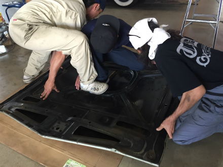 無事、 ボンネット の 折れた 鈑金 が 終了。