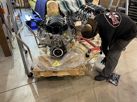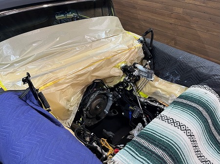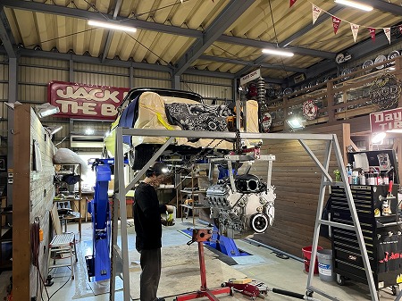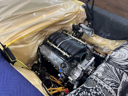 慎重にエンジンを降ろしたら、新しいエンジンに
