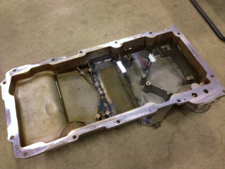 アルミ製 の  オイルパン は、  裏返して  溶接 されまして