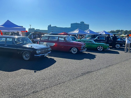 カーショーに並べるクルマの列の