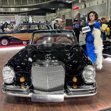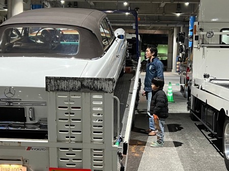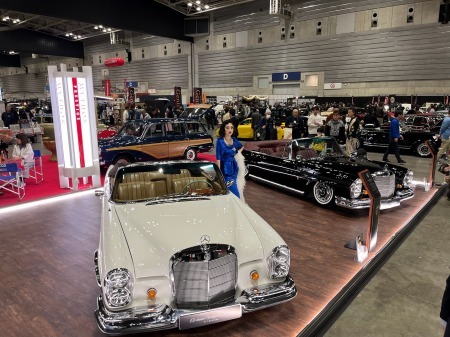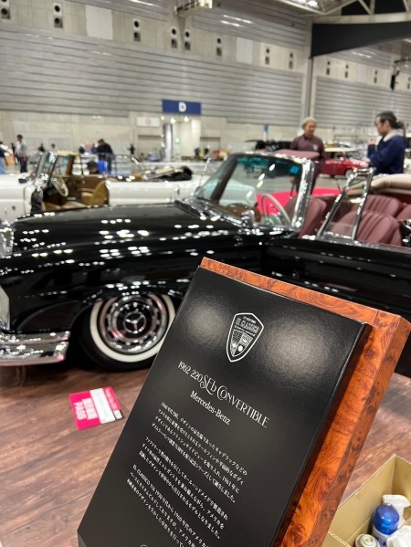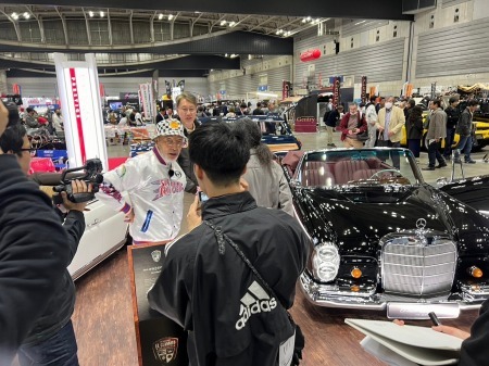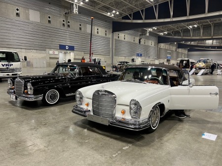 展示した2台のメルセデスを見てもらい