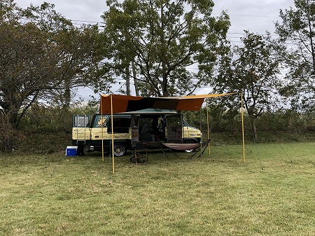 クルマ を 停めたら、 横 に テント を  張って